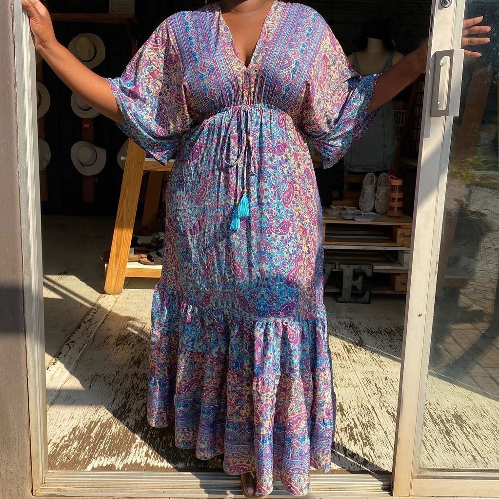 Nestled amidst the breathtaking Colorado mountains, Aspen Moon offers a thoughtfully curated collection of exquisite silk dresses in an array of vibrant patterns and colors, along with versatile silk kimonos, flowing silk pant sets, and elegant boho and western style jewelry to complement any of our Aspen Moon outfits